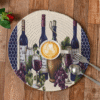 Indulge in the elegance of fine dining with the LHF VinoEleganza™ Round Printed Placemat. Showcasing a hand-painted lineup of detailed wine glasses, ripe fruits, grape vines, and rustic script — this design is a visual celebration of wine culture and European charm.