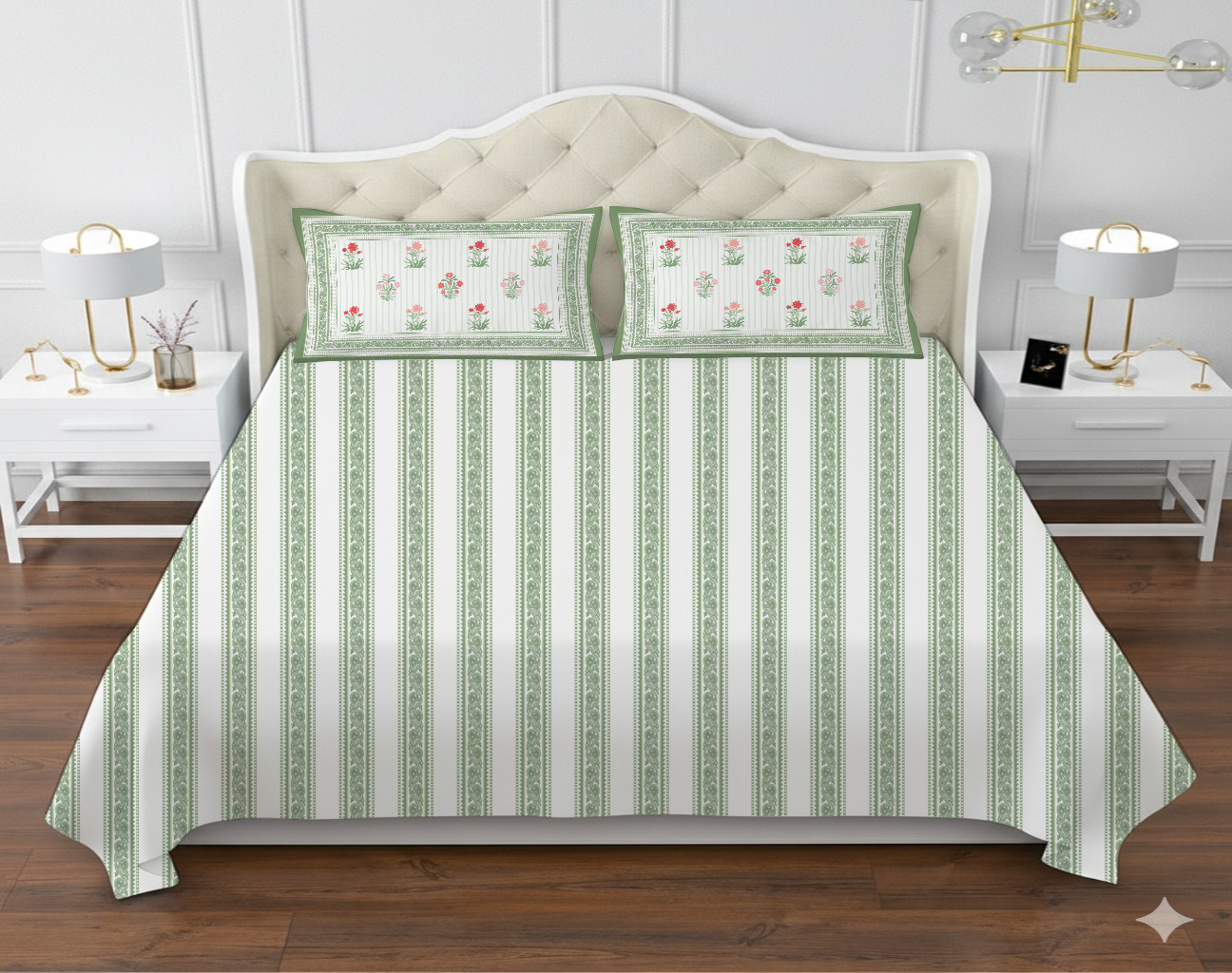 📦 Set Includes – 1 Queen Bedsheet (approx. 90×100 inch) & 2 Pillow Covers